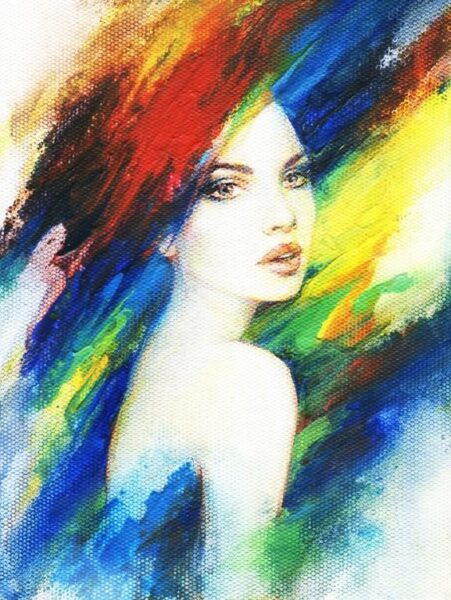 - Abstrakte Darstellung einer Frau mit leuchtenden Farben