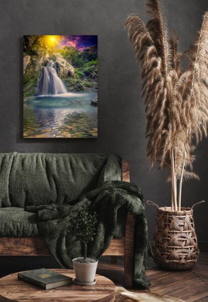 Holen Sie sich mit dem Bild Tropischer Wasserfall ein Stück Paradies in Ihr Zuhause und schaffen Sie eine entspannte und beruhigende Atmosphäre.