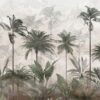 Die Fototapete zeigt hohe Palmen, die sich vor einem nebligen Hintergrund erheben. Der dichte Nebel verleiht dem Motiv eine mystische Note und erzeugt einen Hauch von Geheimnis. Das Bild ist in warmen Grüntönen gehalten, die sofort an sonnige Strände und malerische Landschaften erinnern.
