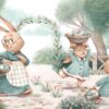 Fototapete „Fröhliche Häschen“ – ein farbenfrohes Abenteuer, fröhliche Stimmung und eine bezaubernde Dekoration fürs Kinderzimmer