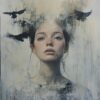 Die zarten Linien eines Frauengesichts sind in florale Motive gehüllt, die Wiedergeburt, Liebe und natürliche Schönheit symbolisieren. Diese Komposition eignet sich perfekt für ein Schlafzimmer, Wohnzimmer oder einen Entspannungsbereich und verleiht dem Raum einen subtilen Charme und Tiefe.