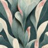 Die Fototapete zeigt ein Muster mit horizontalen Streifen in verschiedenen Farben und Strukturen. Die dominierende Farbpalette umfasst Türkis-, Orange-, Beige- und Cremetöne. Jeder Streifen hat eine leicht unterschiedliche Textur und Sättigung, wodurch ein interessanter Schichteffekt entsteht. Einige Streifen weisen leichte Gebrauchs- oder Alterungsspuren auf, die dem Muster Charakter und Tiefe verleihen.