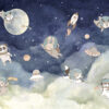 Zarte Pastellfarben und freundliche Illustrationen sorgen dafür, dass die Fototapete perfekt zu verschiedenen Einrichtungsstilen für Kinder passt und Wärme und Freude in das Zimmer des Kleinen bringt. Dank ihr kann das Kind seine Fantasie entwickeln, von interstellaren Reisen träumen und die Geheimnisse des Universums entdecken.