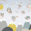 Fototapete „Tiere mit Luftballons in den Bergen“ – eine zauberhafte Reise voller Lächeln!