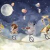 Fototapete „Zirkus der Tiertalente“ – Märchenhafte Freude, farbenfroher Spaß und die magische Welt der kindlichen Fantasie