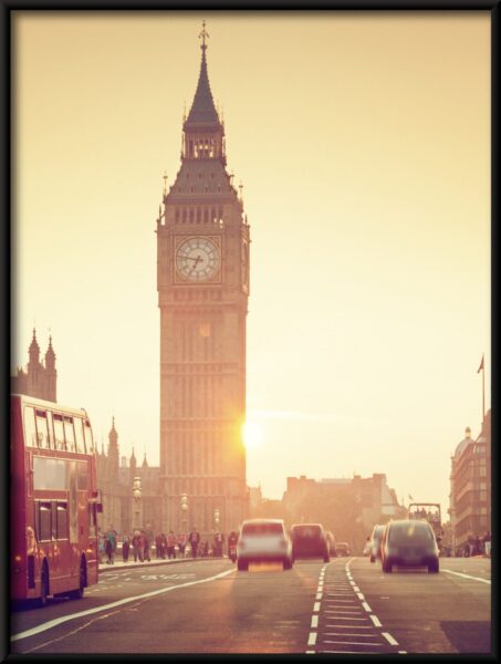 Dieses Poster zeigt das berühmte Wahrzeichen Londons, den Big Ben, in strahlendem Sonnenlicht. Das Bild wurde mit großer Sorgfalt und Liebe zum Detail aufgenommen und lässt den Betrachter die Schönheit und Eleganz dieses ikonischen Bauwerks erleben.