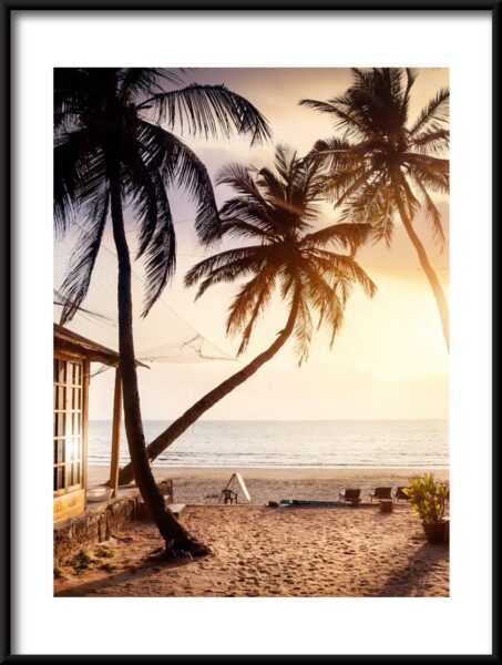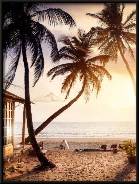 Das Poster zeigt ein malerisches Cottage am Strand, umgeben von üppigem Grün und unendlichen Meereswellen. Der helle Sandstrand und der blaue Himmel erzeugen eine friedliche und beruhigende Stimmung, die perfekt ist, um Stress abzubauen und eine entspannende Atmosphäre in jedem Raum zu schaffen.