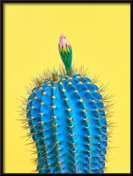 Der blaue Hintergrund des Posters verleiht dem Kaktus eine einzigartige und faszinierende Wirkung. Die leuchtende Farbe hebt sich von anderen klassischen Kaktusmotiven ab und fügt sich perfekt in moderne und minimalistische Einrichtungen ein.