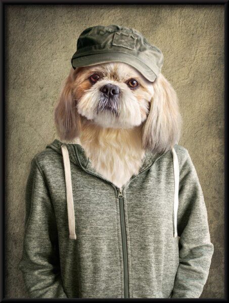 - Originelles Design mit einem entzückenden Hund in einer stylischen Dresa