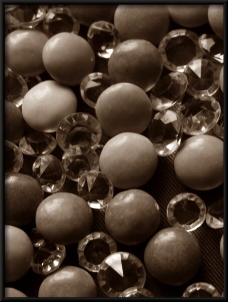 Das einzigartige Muster dieser Fototapete zeigt eine Vielzahl von dunklen Pastillen in verschiedenen Formen und Größen, die sich auf einem matten Hintergrund harmonisch anordnen. Diese abstrakte Darstellung sorgt für eine moderne und elegante Atmosphäre in jedem Raum.