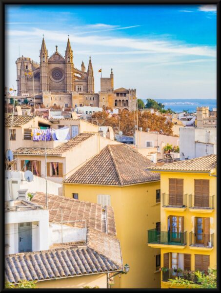 Dieses atemberaubende Poster zeigt ein beeindruckendes Gebäude auf Mallorca und ist ein echter Hingucker für jeden Raum. Egal ob im Wohnzimmer, Schlafzimmer oder Büro – mit diesem Poster holen Sie sich ein Stück mediterranes Flair nach Hause.