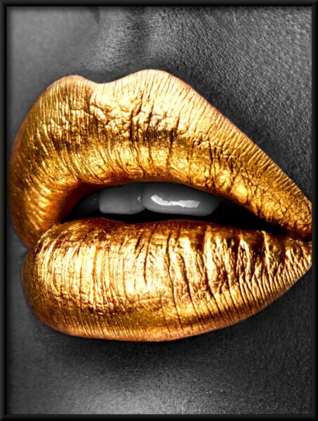 Verleihen Sie Ihrem Zuhause oder Büro einen Hauch von Luxus mit dem Poster „Goldene Lippen“. Bestellen Sie es noch heute und lassen Sie sich von seiner Schönheit verzaubern!