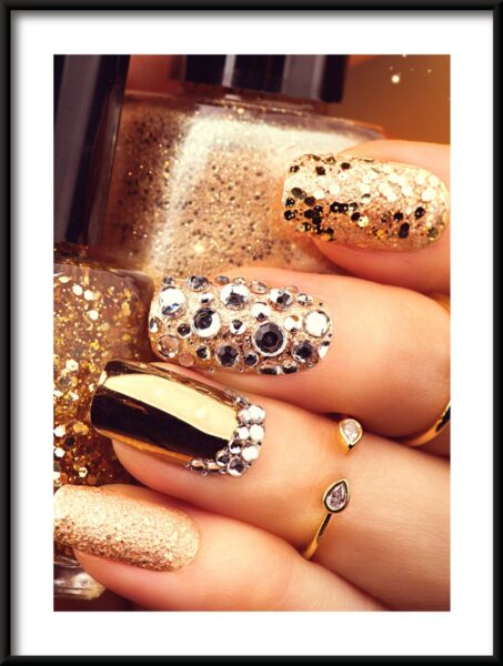 Bringen Sie mit dem Poster Goldener Lack ein Stück Eleganz und Glamour in Ihr Zuhause und lassen Sie sich von seinem einzigartigen Design verzaubern!