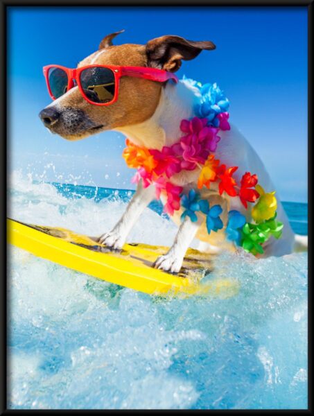Poster Hund auf einem Brett