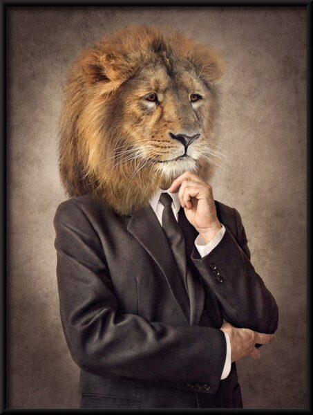 Das Motiv des Posters zeigt einen majestätischen Löwen, der einen schicken Anzug trägt. Diese Kombination aus Wildheit und Raffinesse macht das Bild zu einem wahren Blickfang und Gesprächsthema in jedem Raum.