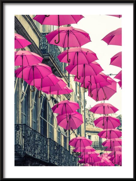 Verleihen Sie Ihrem Zuhause oder Büro mit diesem bezaubernden Poster einen Hauch von Charme und Stil. Lassen Sie sich von der Schönheit der rosa Regenschirme verzaubern und genießen Sie eine angenehme und harmonische Atmosphäre in Ihren Räumen.