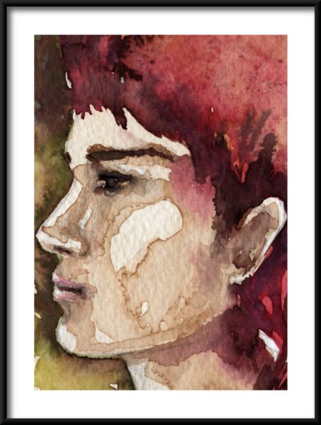 Das intensive Rot des Haares sticht sofort ins Auge und verleiht dem Raum eine warme und einladende Note. Die Details und die lebendigen Farben machen dieses Poster zu einem echten Kunstwerk, das jeden Raum aufwertet.