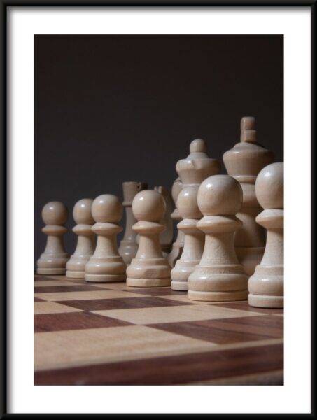 Bringen Sie mit diesem Poster Schachfiguren die faszinierende Welt des Schachs in Ihr Zuhause und lassen Sie sich von der Schönheit und Komplexität dieses zeitlosen Spiels verzaubern.