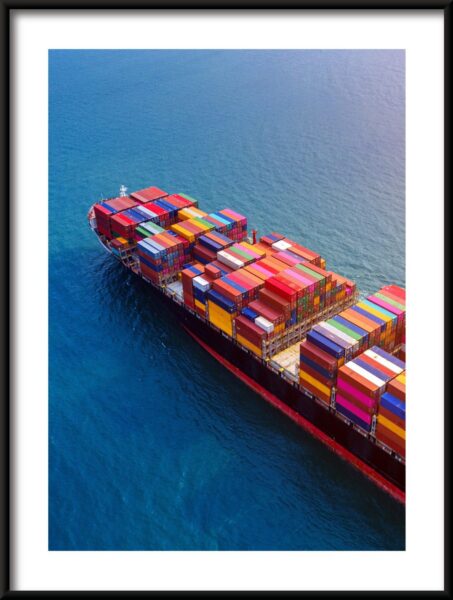 Das schwimmende Containerschiff symbolisiert Reisen, Handel und Abenteuer. Es lädt den Betrachter ein, über die endlosen Weiten des Ozeans zu träumen und sich auf eine Reise ins Unbekannte zu begeben. Mit diesem Poster können Sie Ihrer Fantasie freien Lauf lassen und sich in ferne Welten träumen.