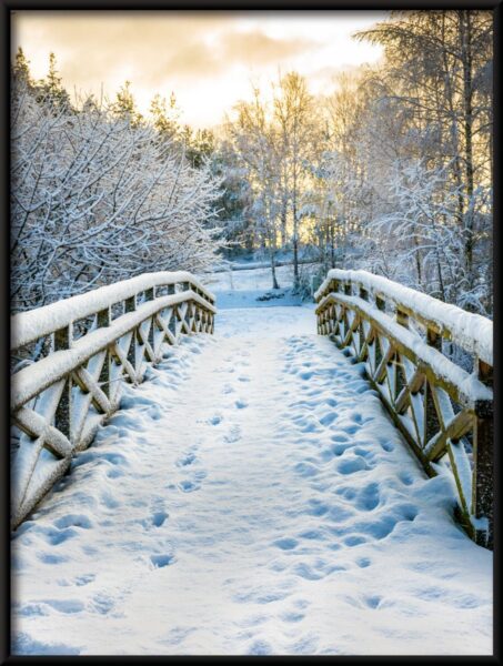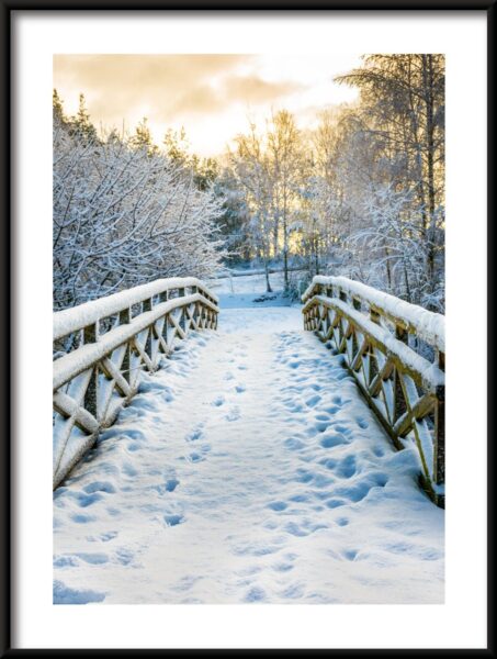 Holen Sie sich mit dem „Poster Snowy Bridge“ ein Stück Winteridylle in Ihr Zuhause und genießen Sie die harmonische Atmosphäre, die dieses Bild verbreitet.
