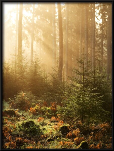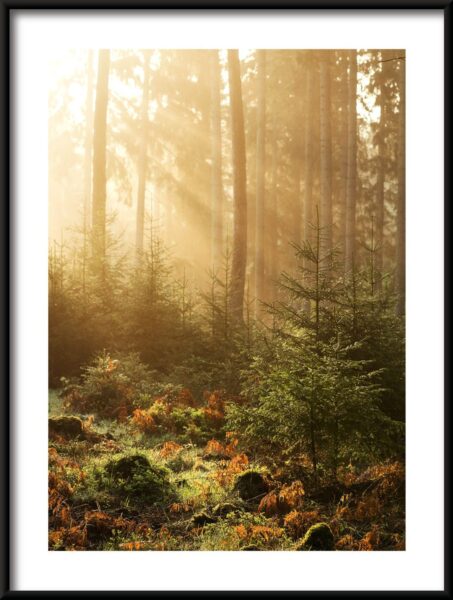 Bringen Sie die Schönheit der Natur in Ihr Zuhause mit dem Poster „Sunny Forest“ und genießen Sie jeden Tag den Anblick dieses atemberaubenden Waldes.
