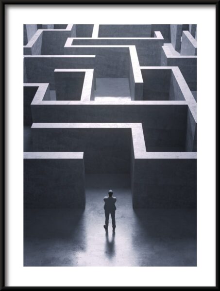 Das schwarz-weiße Farbschema des Posters verleiht ihm eine moderne und stilvolle Optik, die zu verschiedenen Einrichtungsstilen passt. Egal ob im Wohnzimmer, in der Küche oder im Büro – das Poster vor einem Labyrinth wird zum Blickfang an jeder Wand.