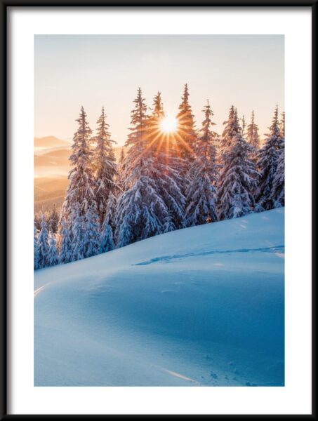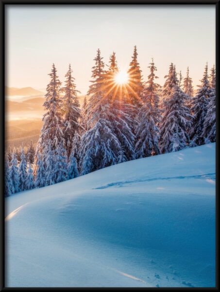 Der „Poster Wintersonne“ ist ein hochwertiges Produkt, das in unserem Shop mit Fototapeten erhältlich ist. Das Motiv zeigt eine wunderschöne Winterlandschaft mit einem atemberaubenden Sonnenuntergang.