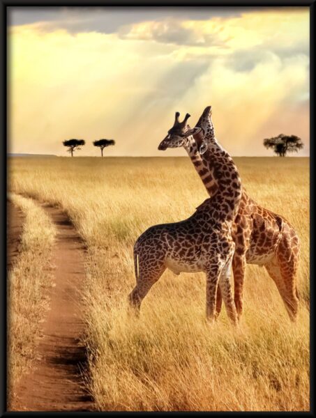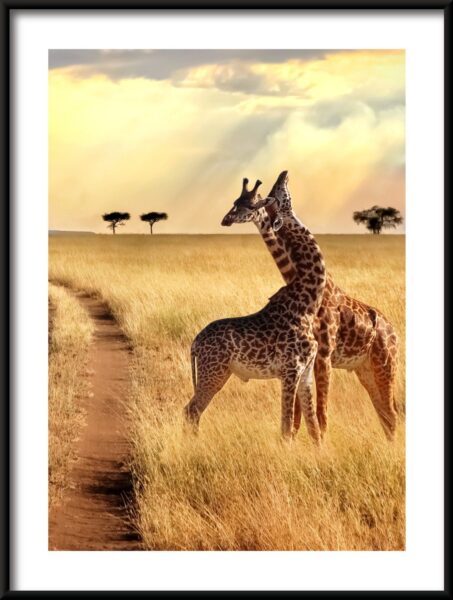Das Poster zeigt zwei majestätische Giraffen, die in der savannenartigen Landschaft Afrikas stehen. Mit ihrer beeindruckenden Größe und Eleganz verleihen sie jedem Raum eine einzigartige Atmosphäre. Egal ob im Wohnzimmer, Schlafzimmer oder Büro – die Giraffen sorgen für einen Hauch von Exotik und Abenteuer.