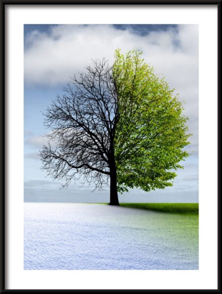 Dieses wunderschöne Poster mit einem zweifarbigen Baum ist ein echter Blickfang für Ihr Zuhause oder Büro. Der Baum erstreckt sich über die gesamte Länge des Posters und zieht alle Blicke auf sich.